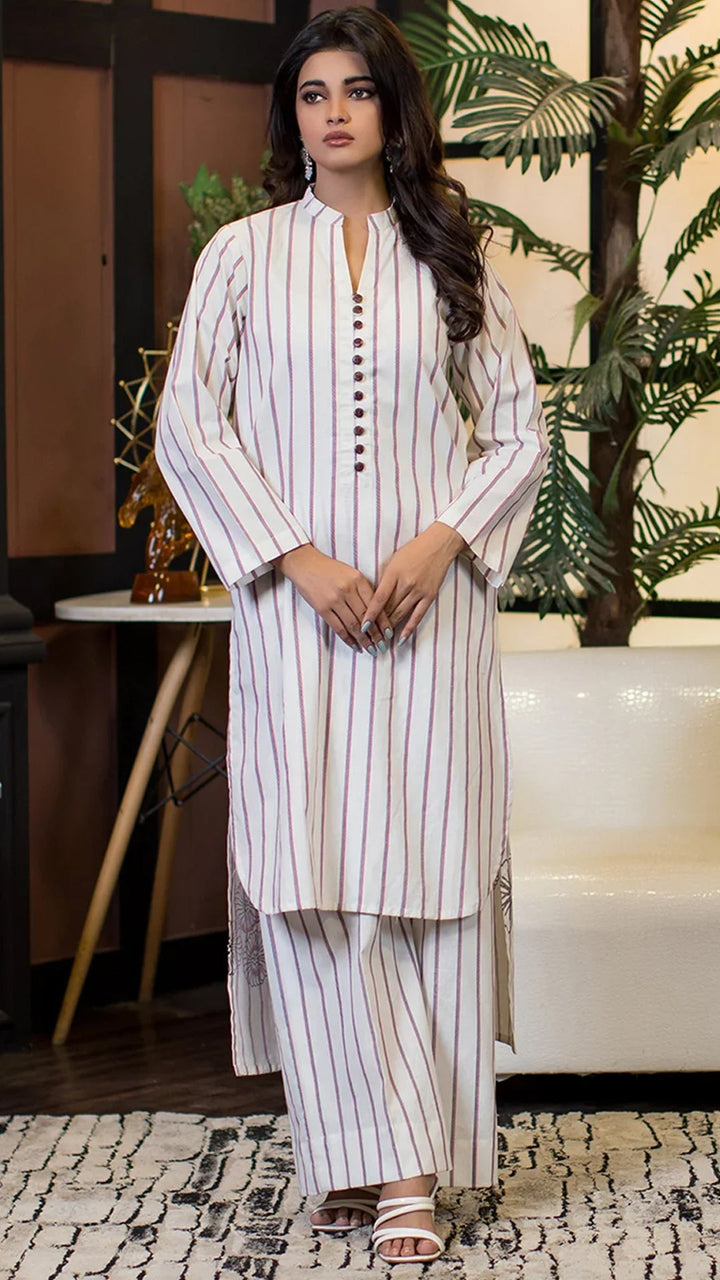 Printed Stripe-Embellished Kurta with Sherwani Neck/eleven wooden Buttons at Front/Side Pockets for Modern admiration. The back is slightly larger in Stripe+ Floral print for an innovative look.