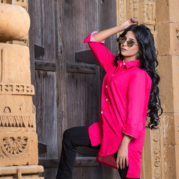 Urban Cut Elegant Cotton Red Stitched Shirt 1 Piece