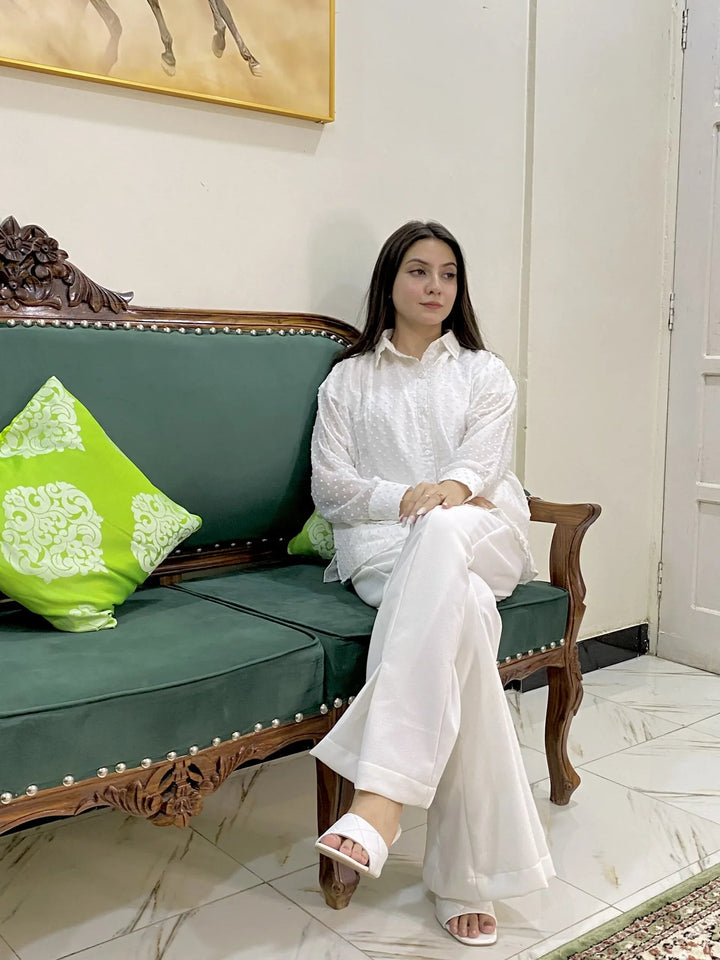 This 1-piece top is crafted from extra soft and fine shirred chiffon fabric, offering a luxurious yet comfortable fit. Designed with a collar and full sleeves, it?s both stylish and practical. The top is lined with 100% cotton, ensuring breathability and ease for all-day wear, perfect for any occasion.