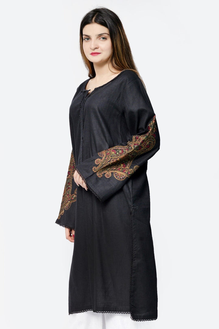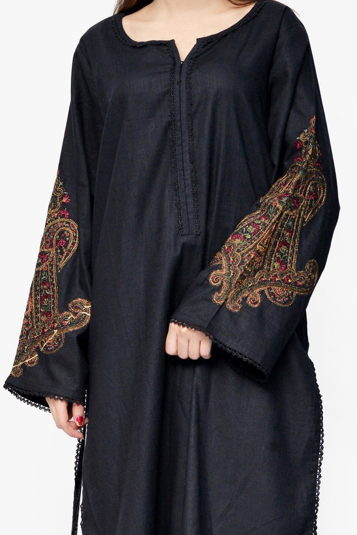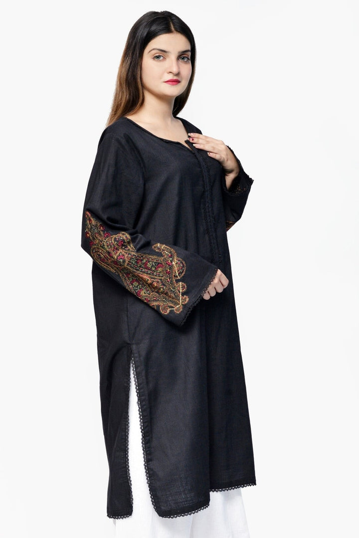Elevate your style with this exquisite 1-piece shirt, crafted from solid cotton and adorned with intricate embroidered detailing. The sleeves feature a stunning bunch of embroidered zari work, adding a touch of luxury to the design. Delicate laces on the borders and sleeves enhance its elegance, while the beautifully designed neck adds a distinctive charm. This shirt seamlessly combines traditional craftsmanship with modern sophistication.