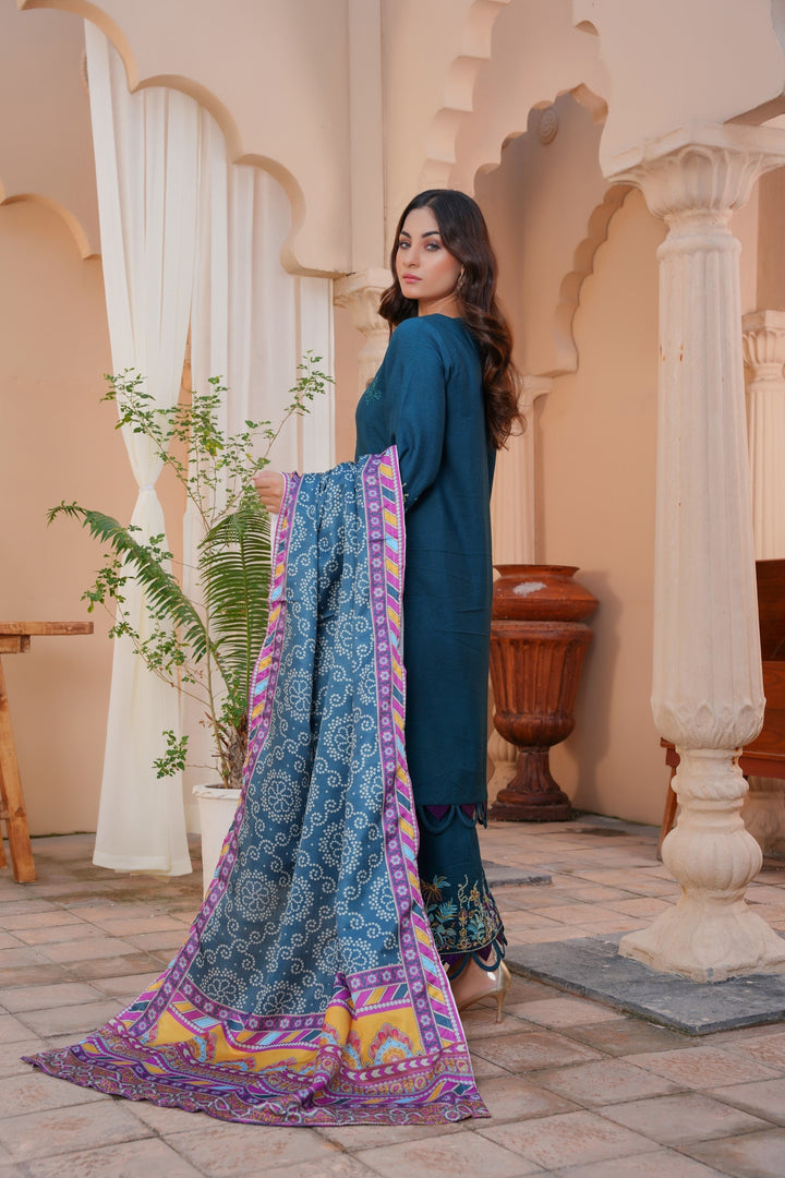 Threads & Weaves Stitched 3 PC - Embroidered Karandi Pret-05