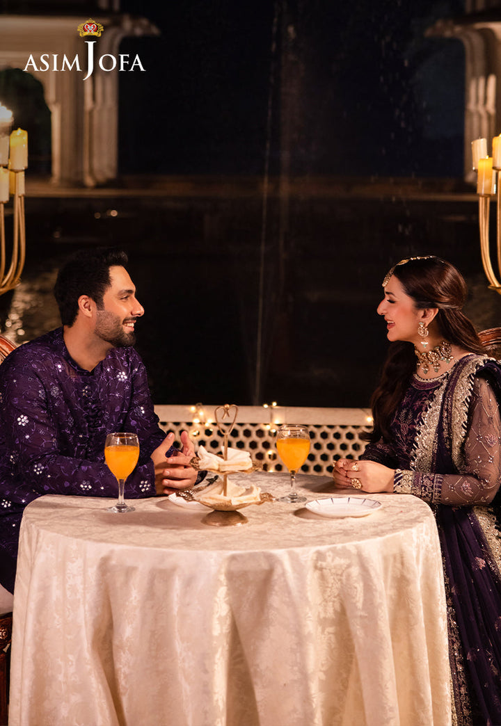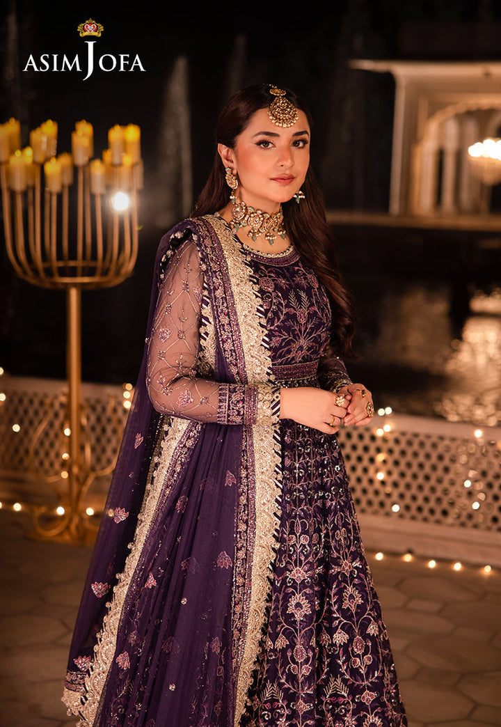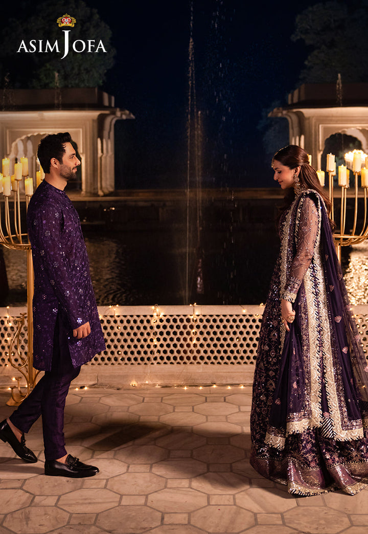Swathed in the mystique of twilight, this dress is a purple dream woven into existence. Champagne gold zari, like sunbeams kissing a lavender sky, are studded with stardust-like sequins. Threads in mauve and deep purple hues dance in harmony, creating a masterpiece of color. The embroidered dupatta, a wispy cloud of enchantment, finishes this ensemble with the grace of a fairytale ending.