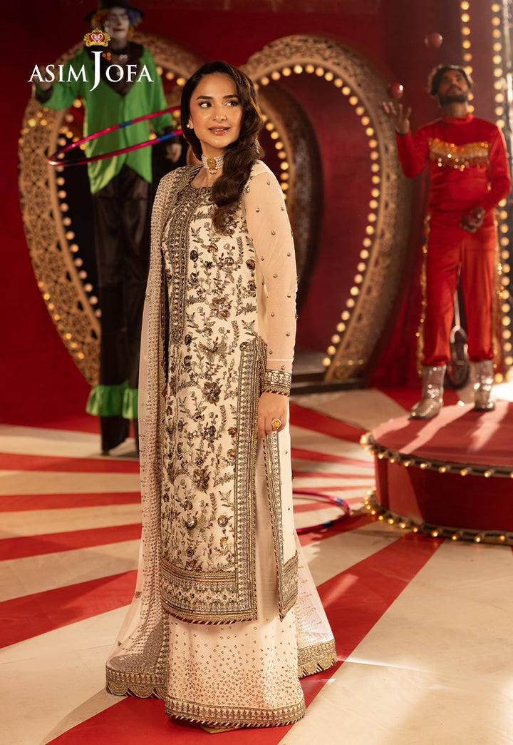 The epitome of refined luxury, this ivory ensemble is a serene vision brought to life through exquisite craftsmanship. The shirt stands as an embroidered masterpiece, adorned with a radiant interplay of 5mm antique gold and 3mm light gold cupped sequins, while sage green and maroon threadwork add richness and depth to the design. The look is elevated with flawlessly embroidered trousers, dusted with stardust-like sequins that lend a soft, luminous glow. Completing the ensemble is a lavishly embroidered dupatta, draping effortlessly to define elegance and grandeur. This is not just fashion—it’s the very definition of opulence.