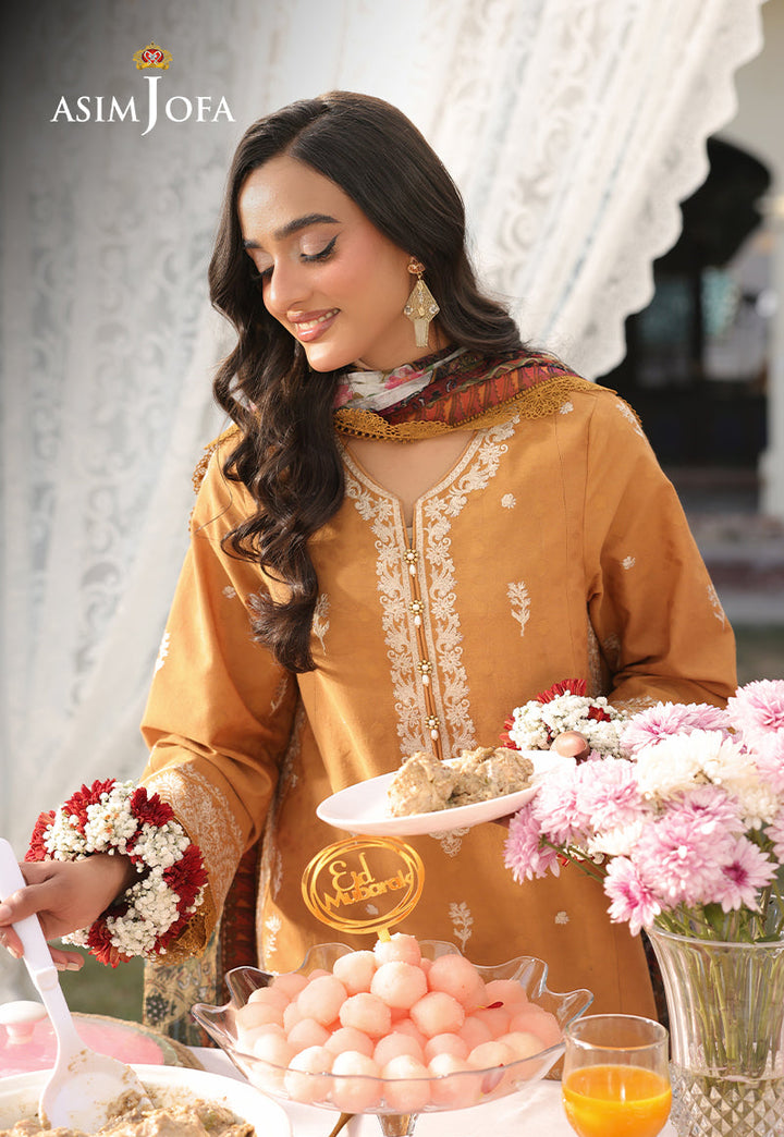 Bask in the warm glow of this captivating mustard ensemble, where traditional artistry meets chicness. The shirt is a testament to cultural beauty, showcasing threadwork in ivory shades that create a mesmerizing, textured effect. It's elegantly paired with a printed chiffon dupatta, adding a graceful drape, and printed trousers that complete this chic and sophisticated look. This ensemble is a vibrant ode to timeless style, perfect for those who appreciate refined appearance.