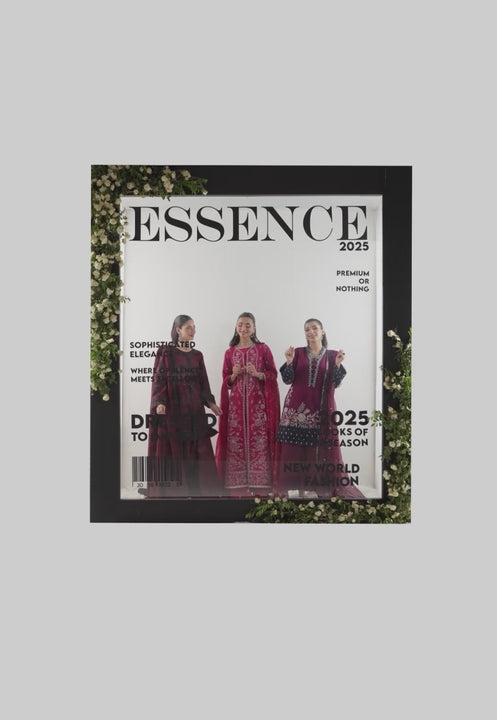 A statement in motion, this magenta ensemble is where color meets architecture. Designed in a striking color-block silhouette, the navy blue inserts cut through the vibrant magenta like brushstrokes on a canvas. The neckline - bold and structured in navy, anchors the look with modern sophistication. Flowy floral embroidery graces the shirt and sleeve hems in delicate off-white threads, elevated by two-toned mink zari and glimmers of light gold sequins, creating a texture that feels both airy and opulent. Finished with a minimally embroidered dupatta, this look is a quiet rebellion—minimal in detail, maximum in style.