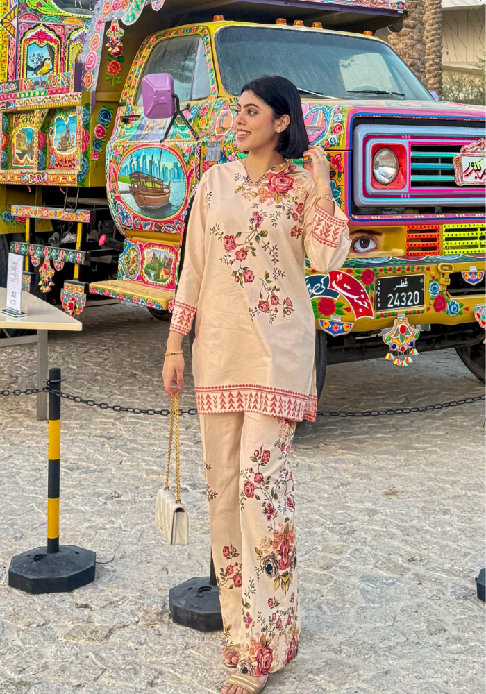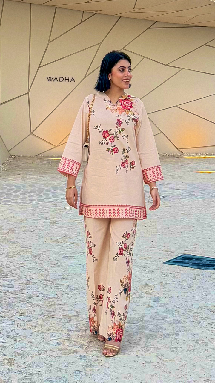 Enhance your wardrobe with our elegant printed cambric two-piece ensemble, thoughtfully crafted for a perfect blend of comfort and style. Embrace the beauty of the season and showcase your distinctive fashion sense with our versatile cambric collection, designed to turn heads and leave a lasting impression.