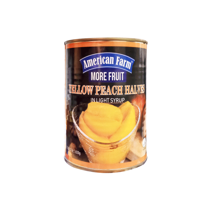 American Farm Yellow Peach Halves In Light Syrup Tin 820g
