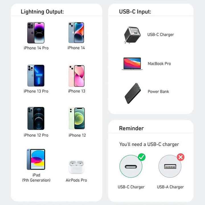 • What You Get: Anker 310 USB-C to Lightning Cable, welcome guide.