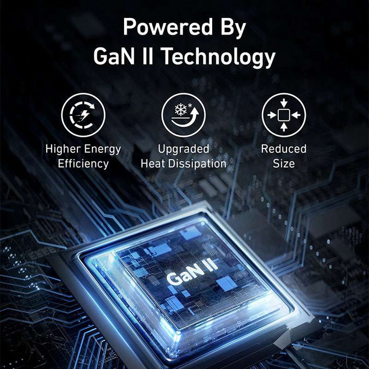 With a 100% increase in operating frequency, an innovative stacked design, and an upgraded circuit board structure, GaN II technology makes our latest charger smaller without sacrificing a drop of power.