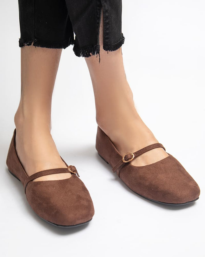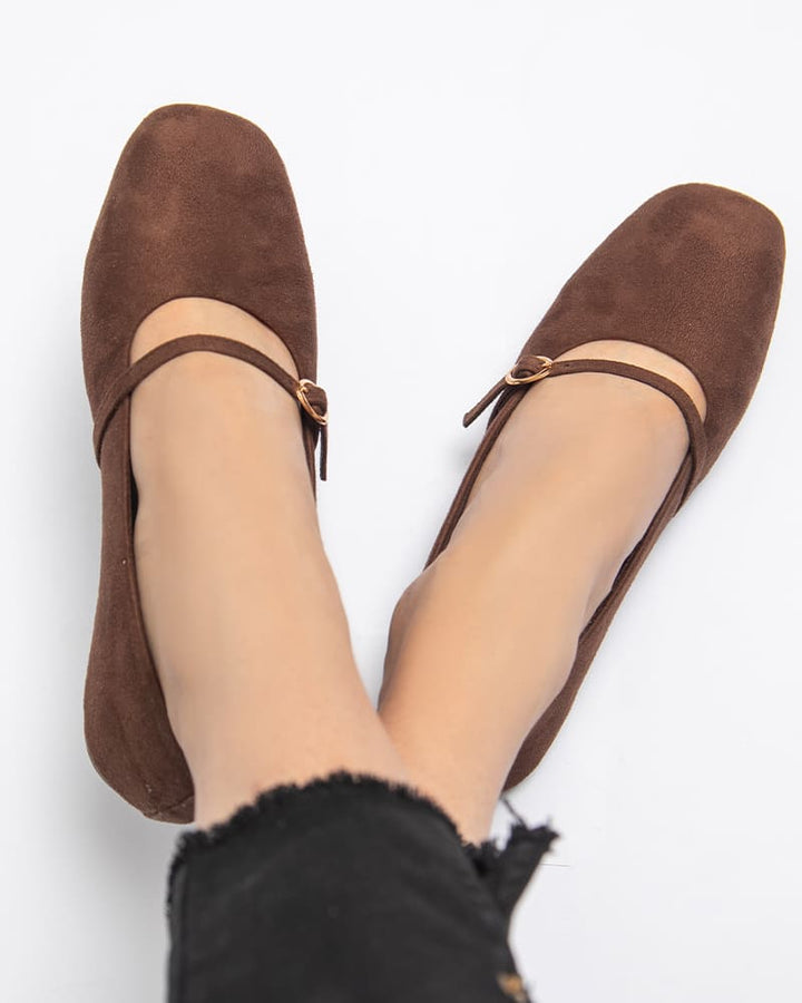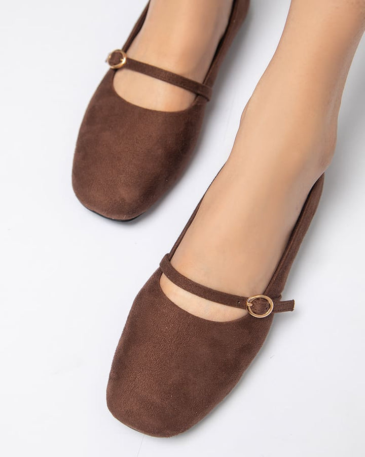 Details: Mary janes with suede outer and adjustable strap on top. Cushioned insole lining. Perfect for long walks