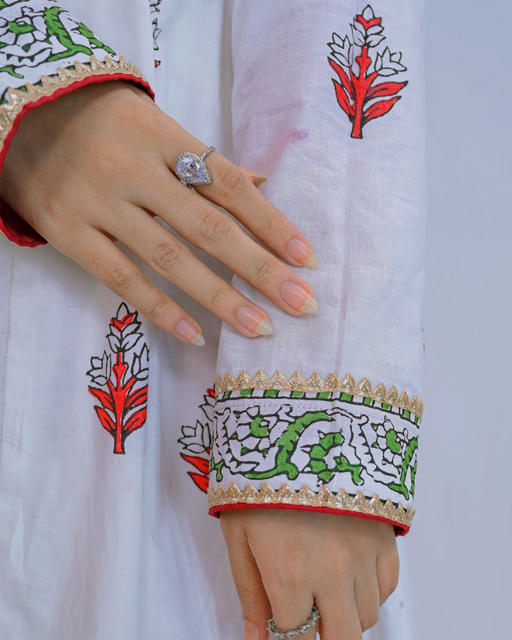 Bring timeless charm to your wardrobe with ASBP-101 Dobby Spring 3PCS, a graceful block-printed outfit that combines elegance with comfort. Crafted from soft dobby fabric, this two-piece set features a beautifully handcrafted block print design in red and green floral patterns. Perfect for casual wear, festive gatherings, or summer outings, its flowing silhouette and traditional motifs offer both style and sophistication.