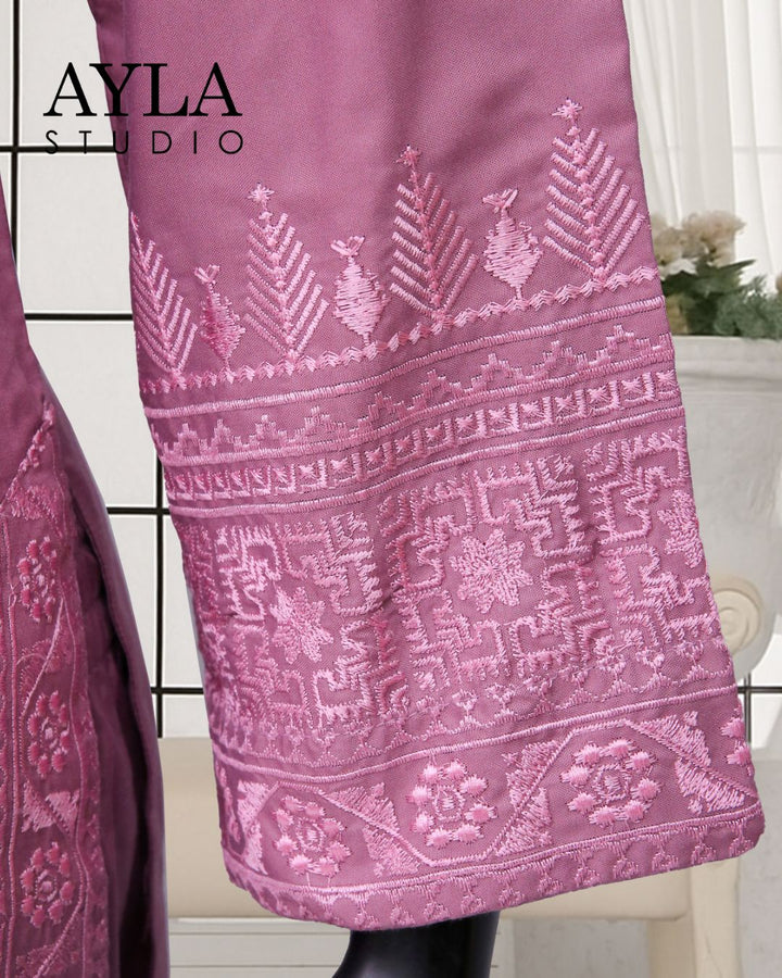 Elevate your eastern wardrobe with our "Shabnam" 2-piece solid embroidered dress in a rich Plum shade. Crafted with premium lawn fabric and delicate embroidery, this ensemble offers elegance and ease in every stitch. The intricately designed shirt paired with a matching trouser makes it a timeless addition to your semi-formal or festive collection.