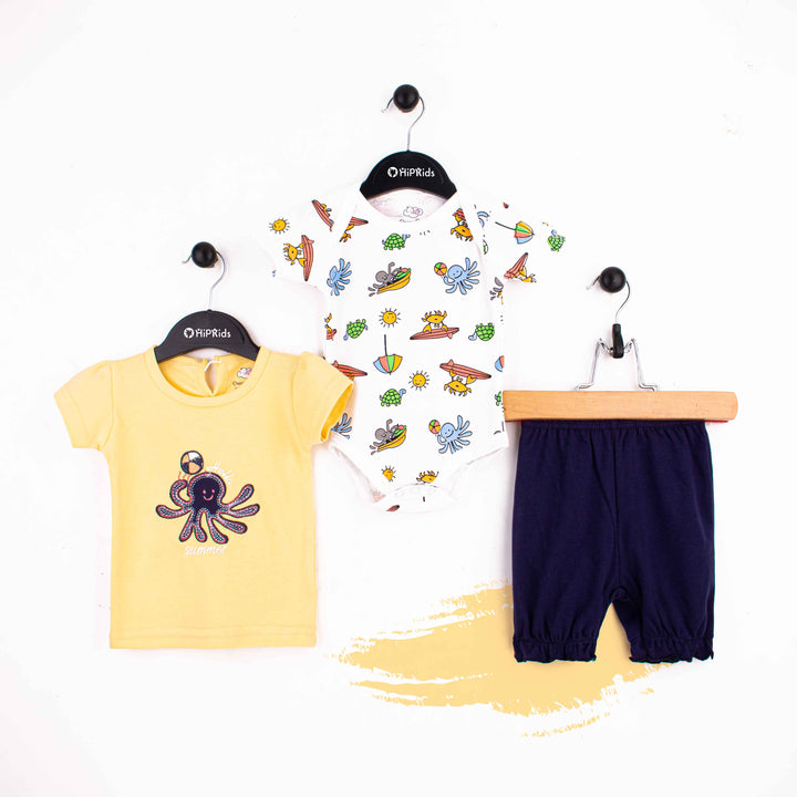 Baby Girl 3 Piece Set Yellow Hello Summer