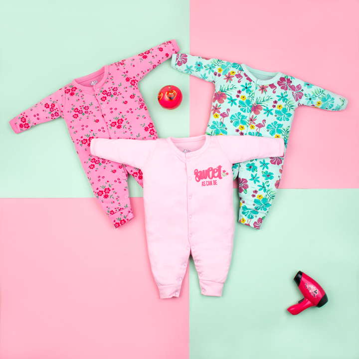 Baby Girl 3Pk Sleepsuits Sweet As Can Be Print