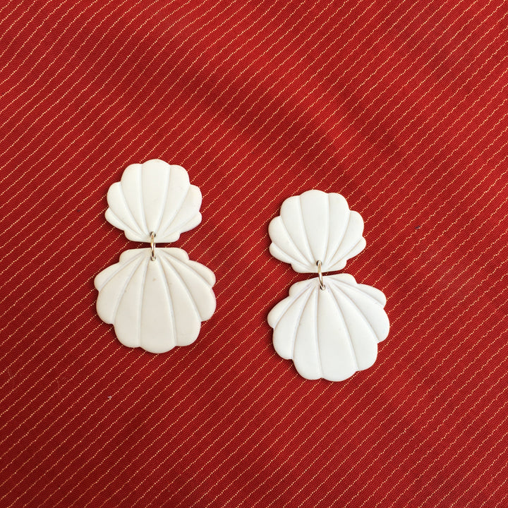 Elevate your style with our White Shell Statement Earrings – a perfect blend of coastal charm and modern elegance. Handcrafted from polymer clay, these earrings feature a clean, minimalist shell design in classic white, making them a timeless accessory for any outfit. Despite their bold look, they’re incredibly lightweight, durable, and comfortable for all-day wear. Whether you're dressing up for brunch or adding flair to your vacation look, these earrings are your go-to for effortless sophistication with a touch of the sea.