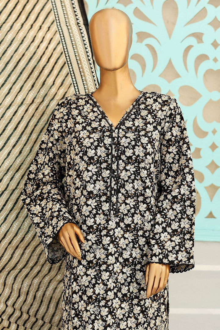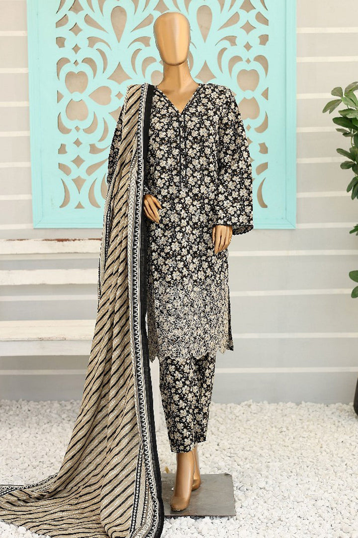 Bin Saeed Stitched 3 Piece Chikankari Emb Khaddar Collection'2024-WK-1107-Black
