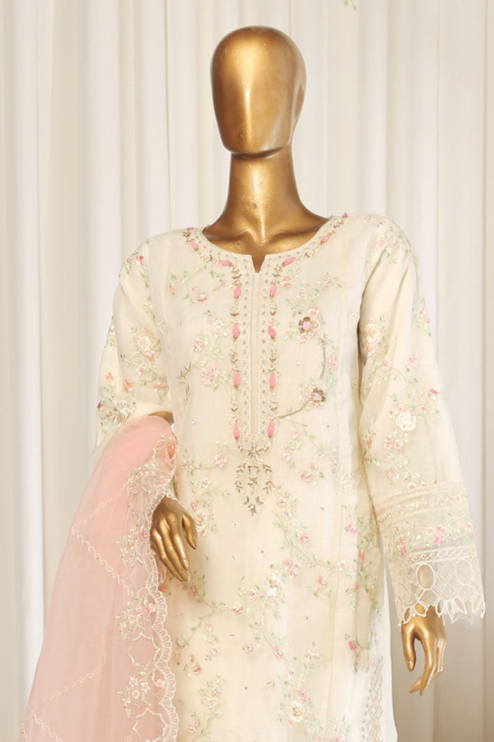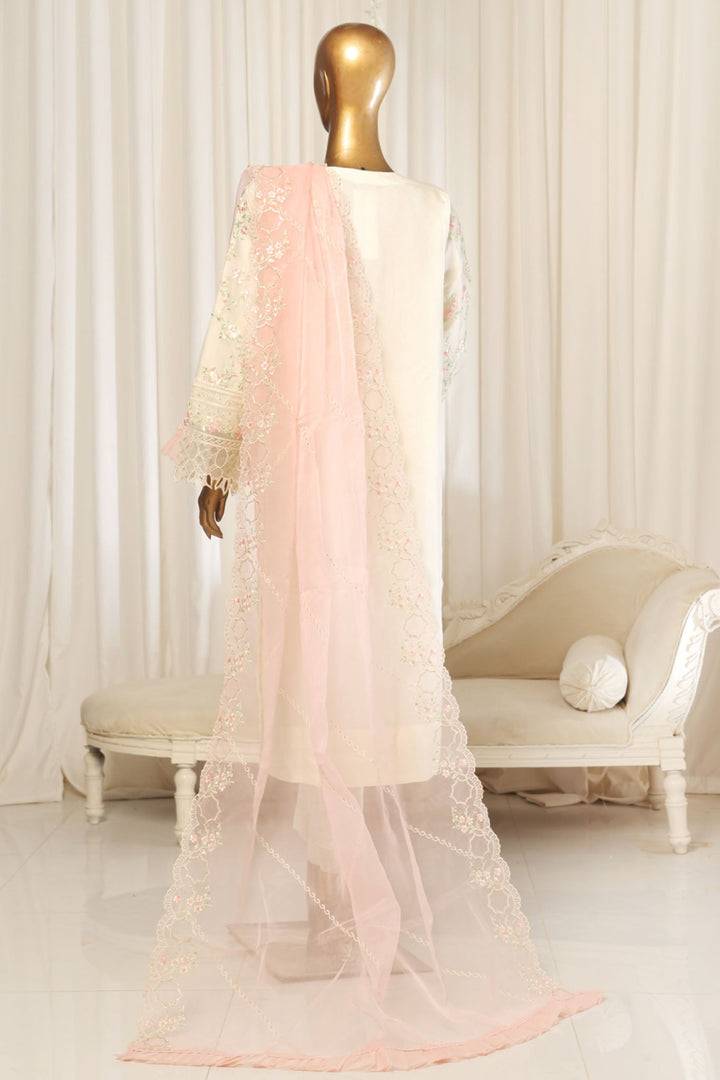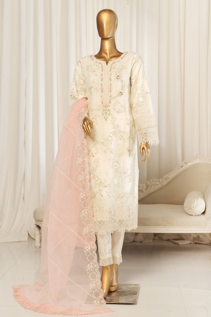Bin Saeed Stitched 3 Piece Emb Chiffon Collection'2025-OWS-1789-Off White