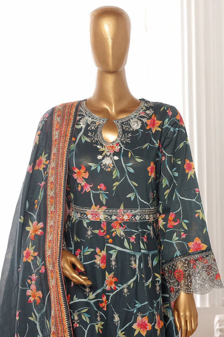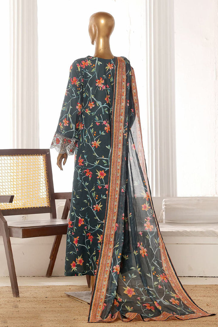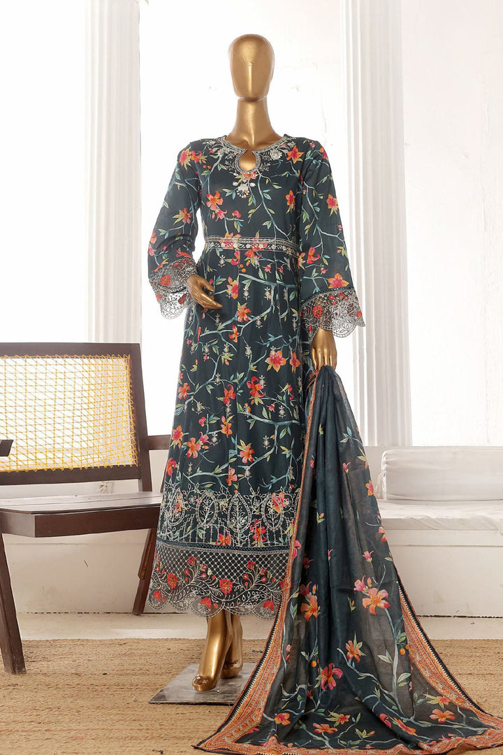 Bin Saeed Stitched 3 Piece Emb Lawn Frock Vol-02 Collection-SM-1628-Blue