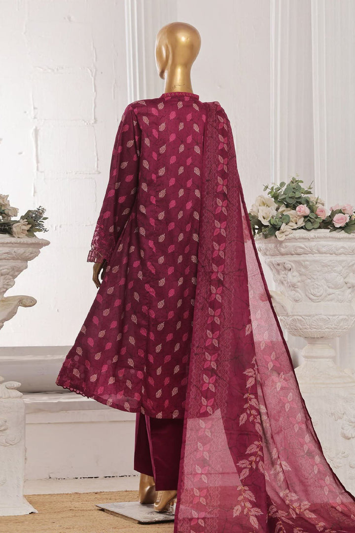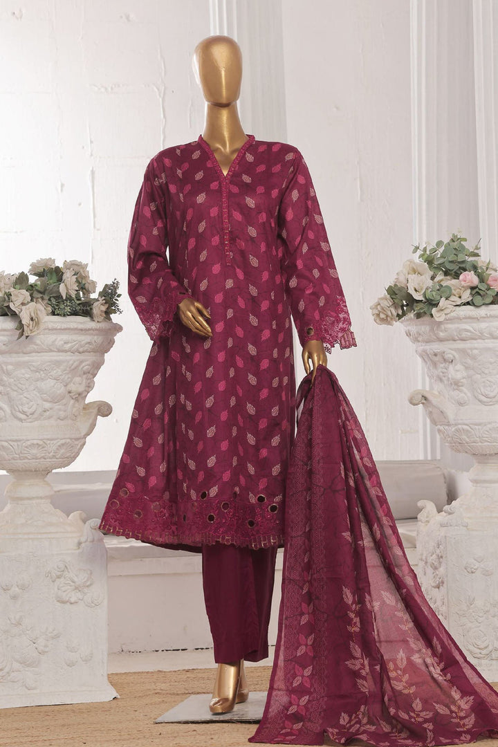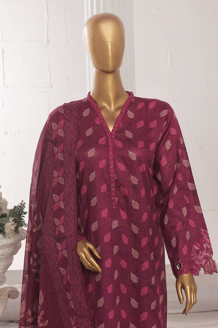 Bin Saeed Stitched 3 Piece Emb Lawn Frock Vol-03 Collection-SM-1640-Purple