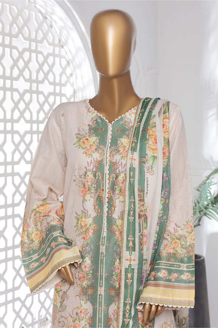 Bin Saeed Stitched 3 Piece Exc Chikankari Lawn Collection'2025-SM-2136-Off White