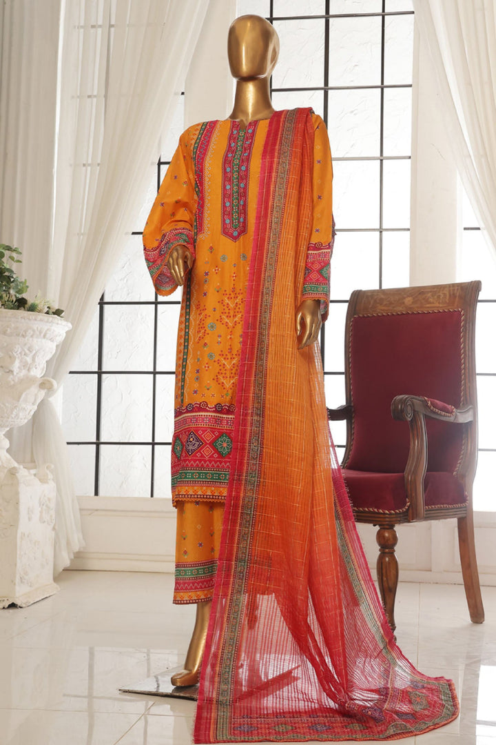 Bin Saeed Stitched 3 Piece Exc Printed Lawn Vol-02 Collection-SM-1708-Yellow