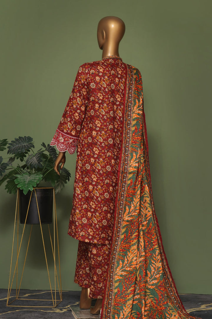 Bin Saeed Stitched 3 Piece Exclusive Emb Cotton Vol-02 Collection'2024-WC-1257-Maroon