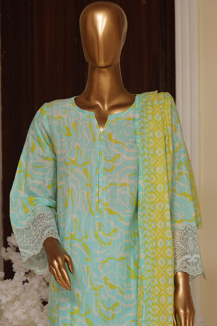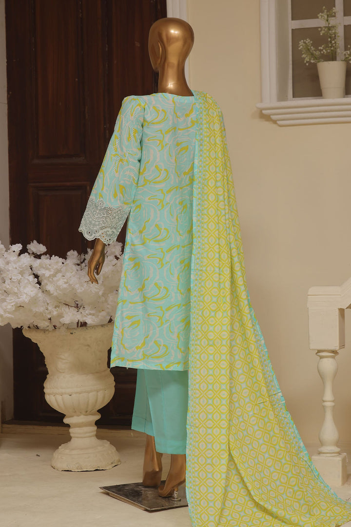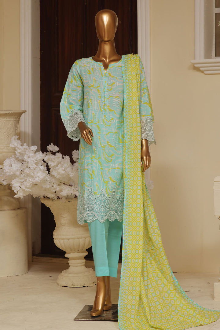 Bin Saeed Stitched 3 Piece Exclusive Emb Lawn Vol-02 Collection-SM-1573-Ferozi