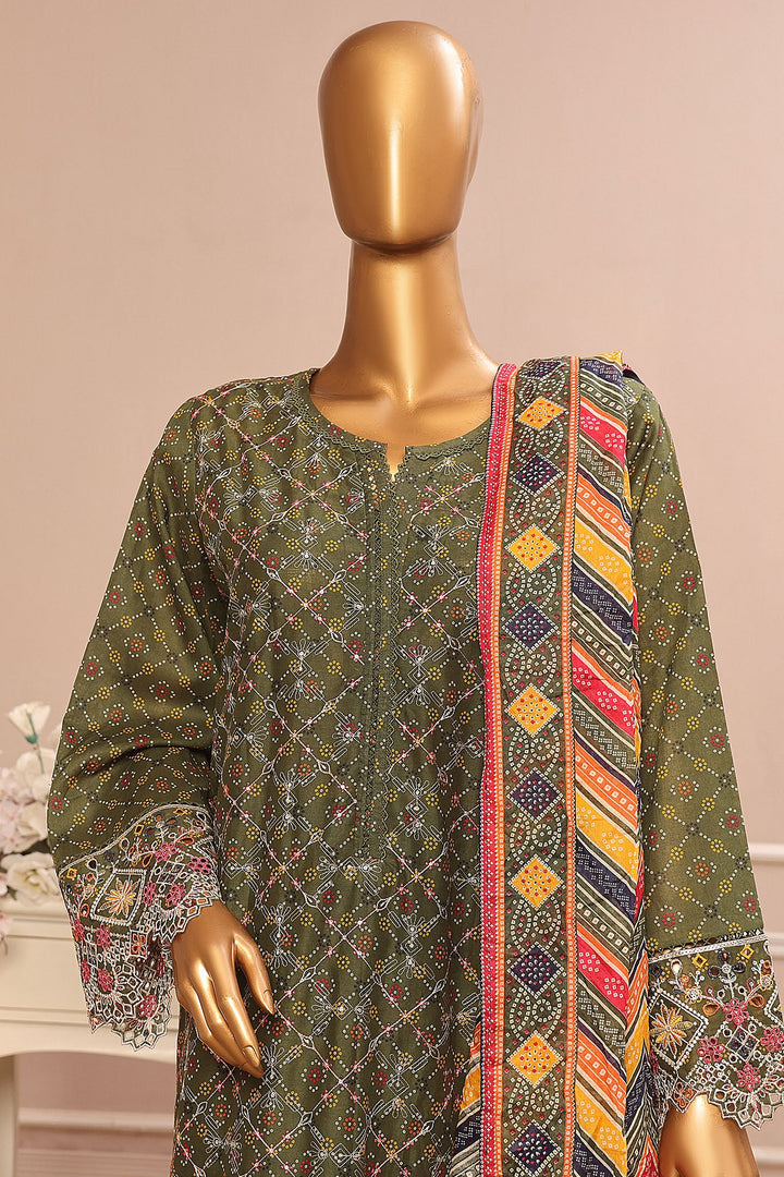 Bin Saeed Stitched 3 Piece Exclusive Emb Lawn Vol-02 Collection-SM-1578-Green