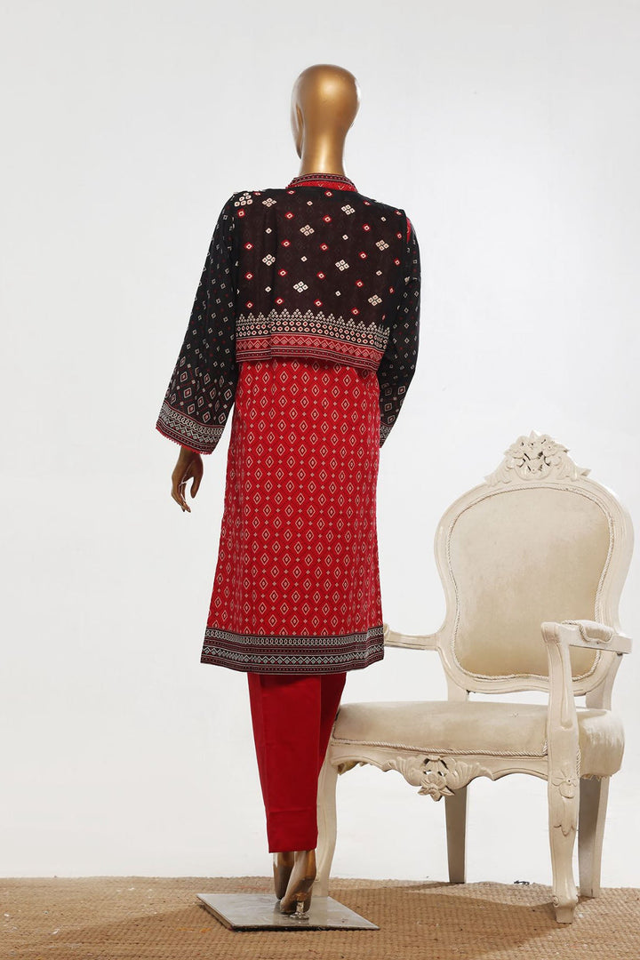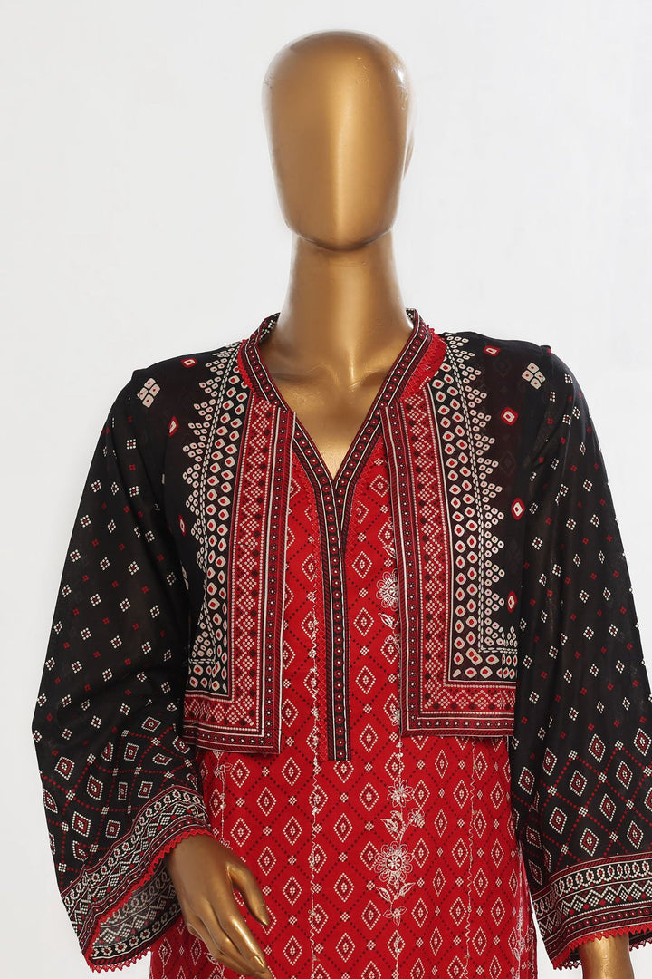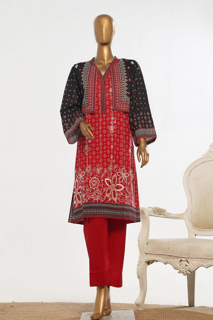 Bin Saeed Stitched 3 Piece Exclusive Emb Lawn With Coat Collection-SM-1648-Red