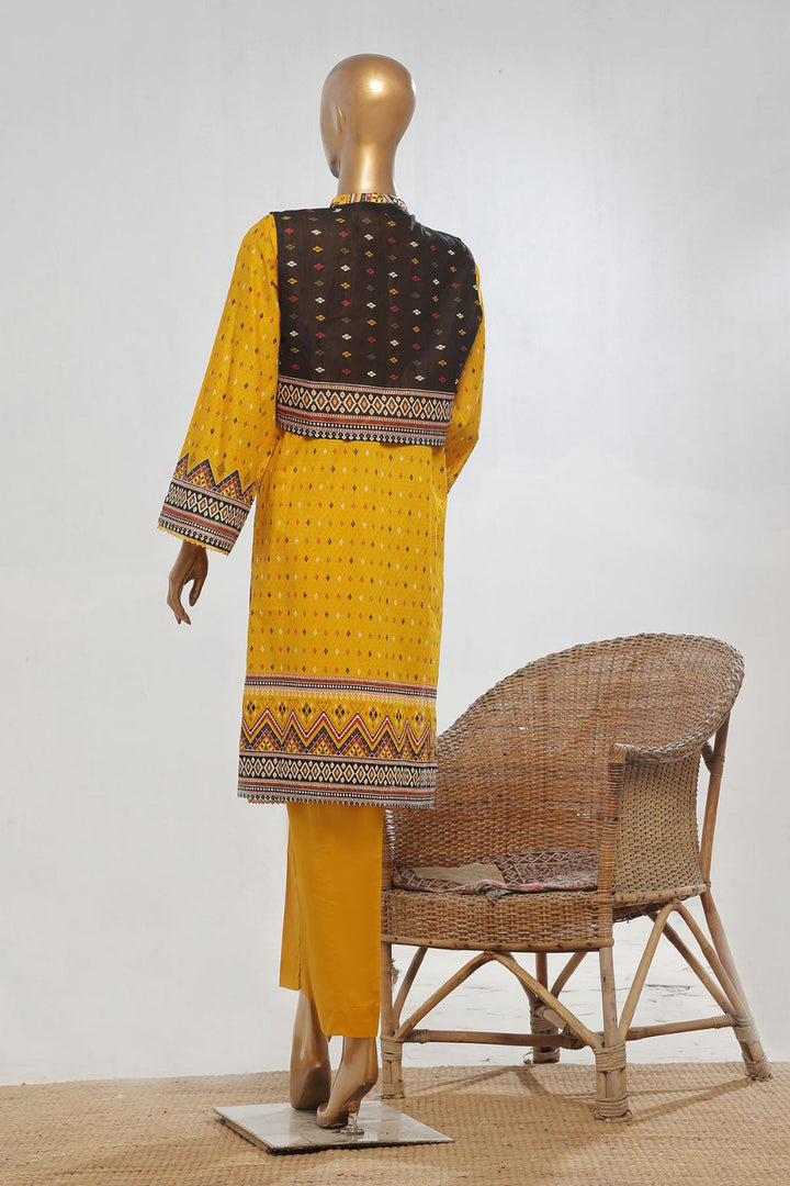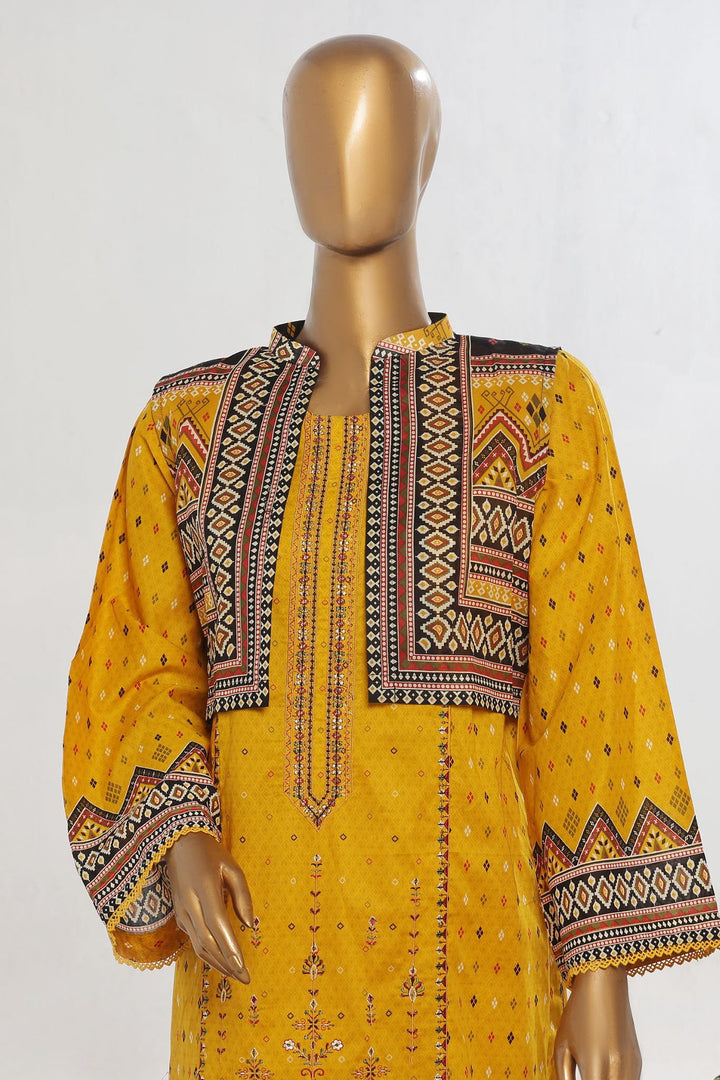 Bin Saeed Stitched 3 Piece Exclusive Emb Lawn With Coat Collection-SM-1650-Yellow