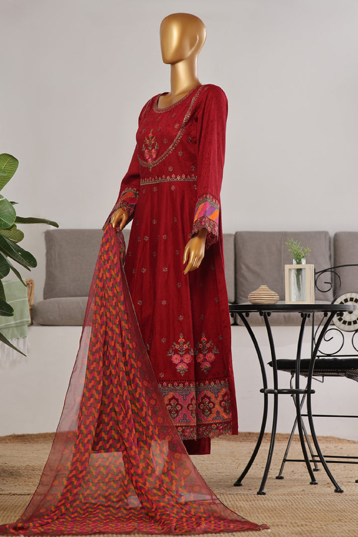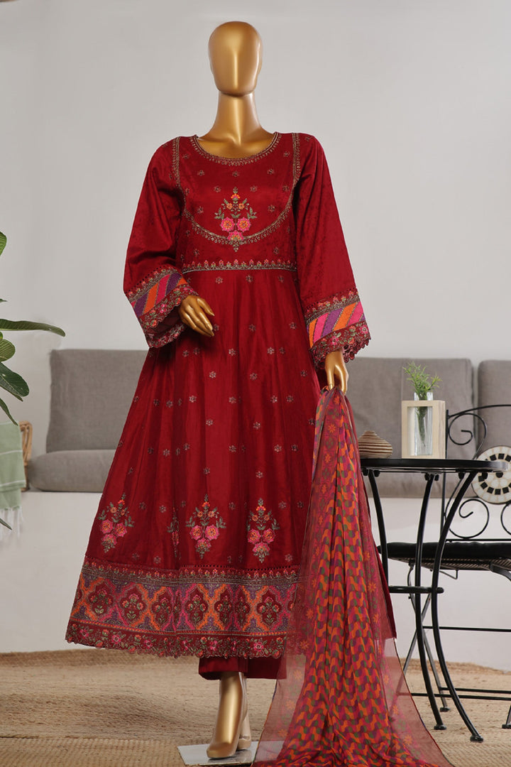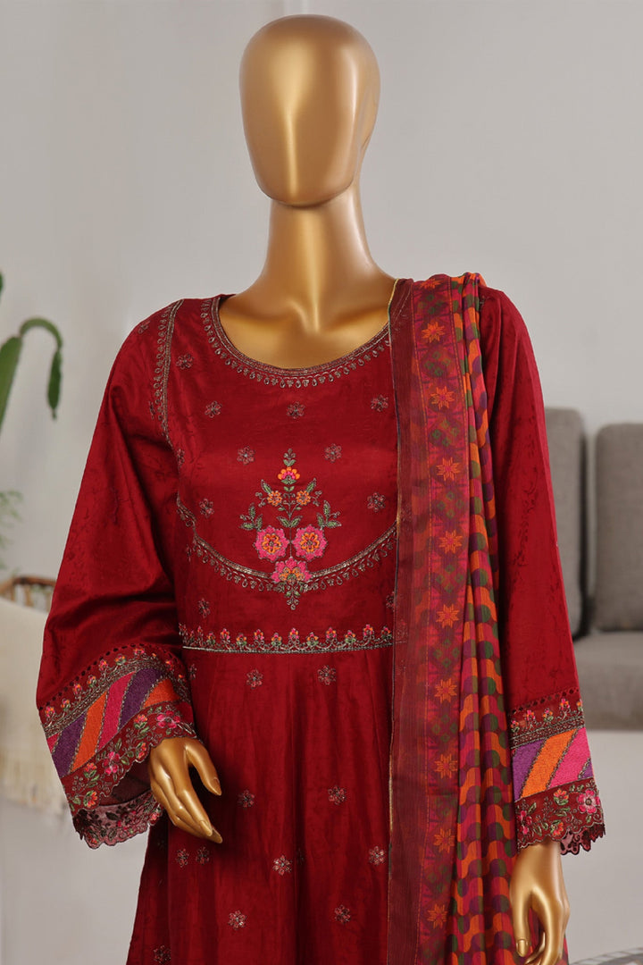Bin Saeed Stitched 3 Piece Festive Emb Jacquard Frocks Collection'2024-BNS-1037-Maroon