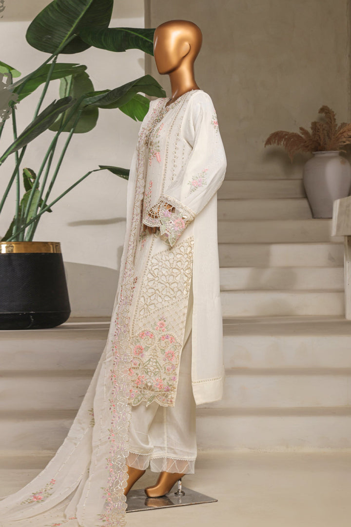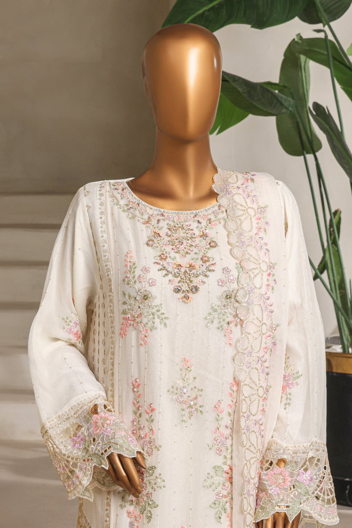 Bin Saeed Stitched 3 Piece Luxury Emb Chiffon & Organza Collection'2025-STSC-2193-Off White
