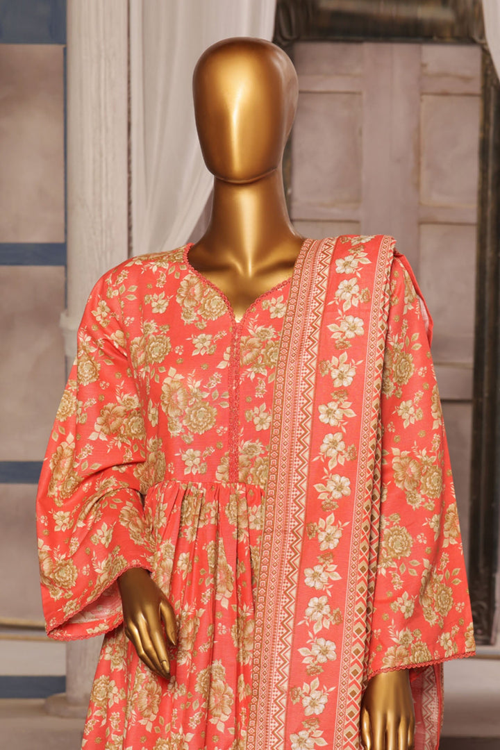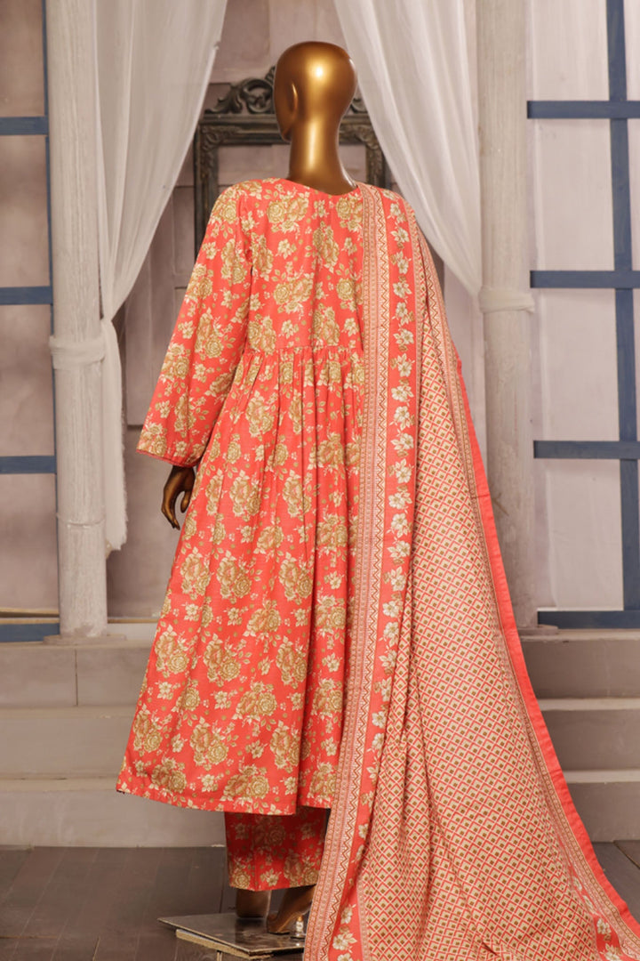 Bin Saeed Stitched 3 Piece Printed Khaddar Frocks Vol-01 Collection'2024-WK-1244-Peach