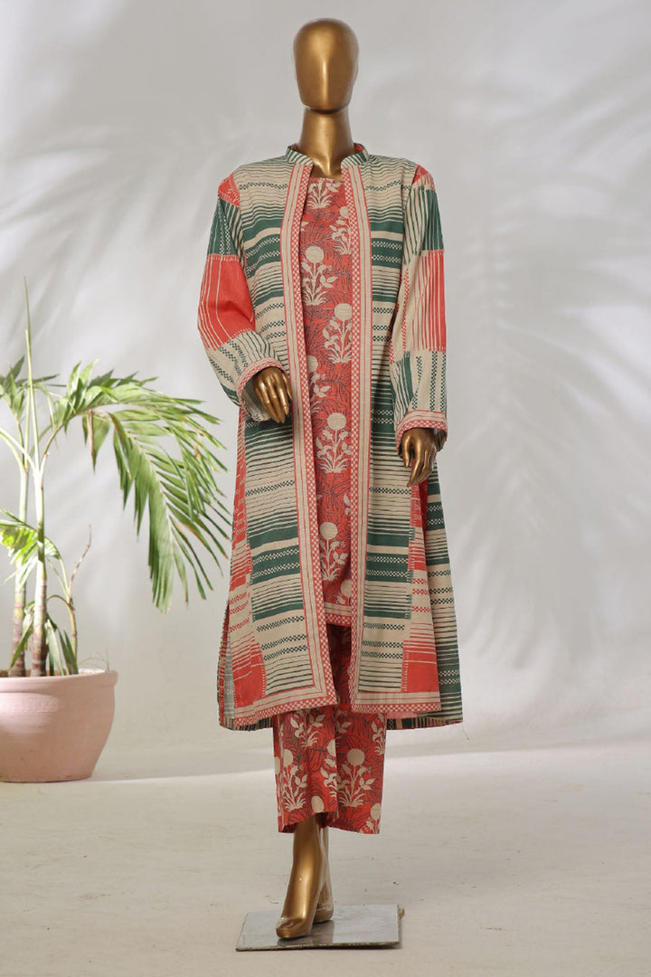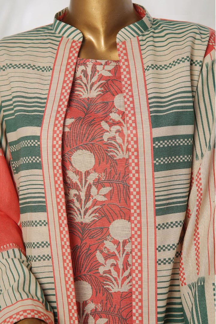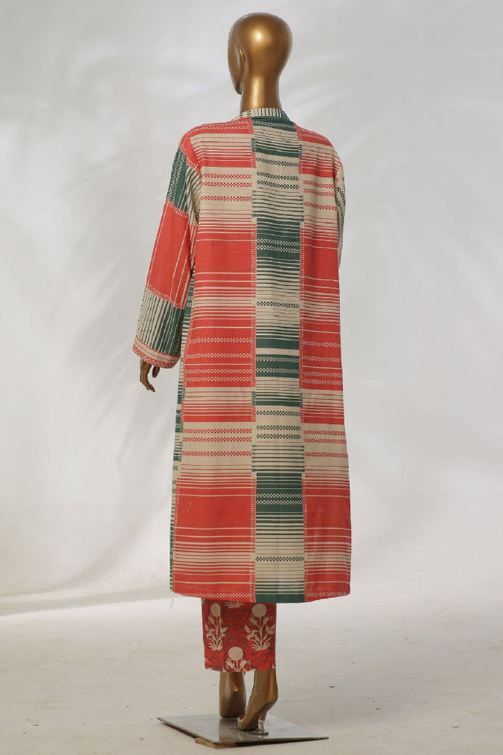 Bin Saeed Stitched 3 Piece Printed Khaddar Vol-01 Jacket Collection'2024-WK-1291-Orange