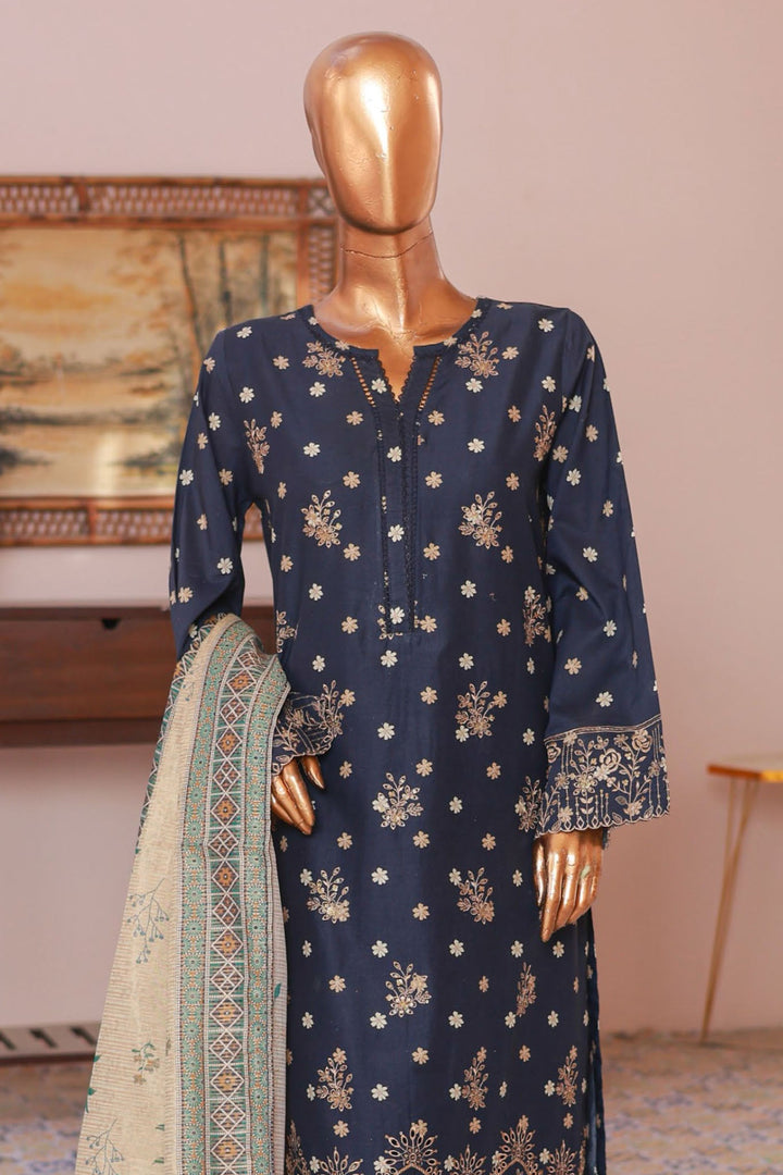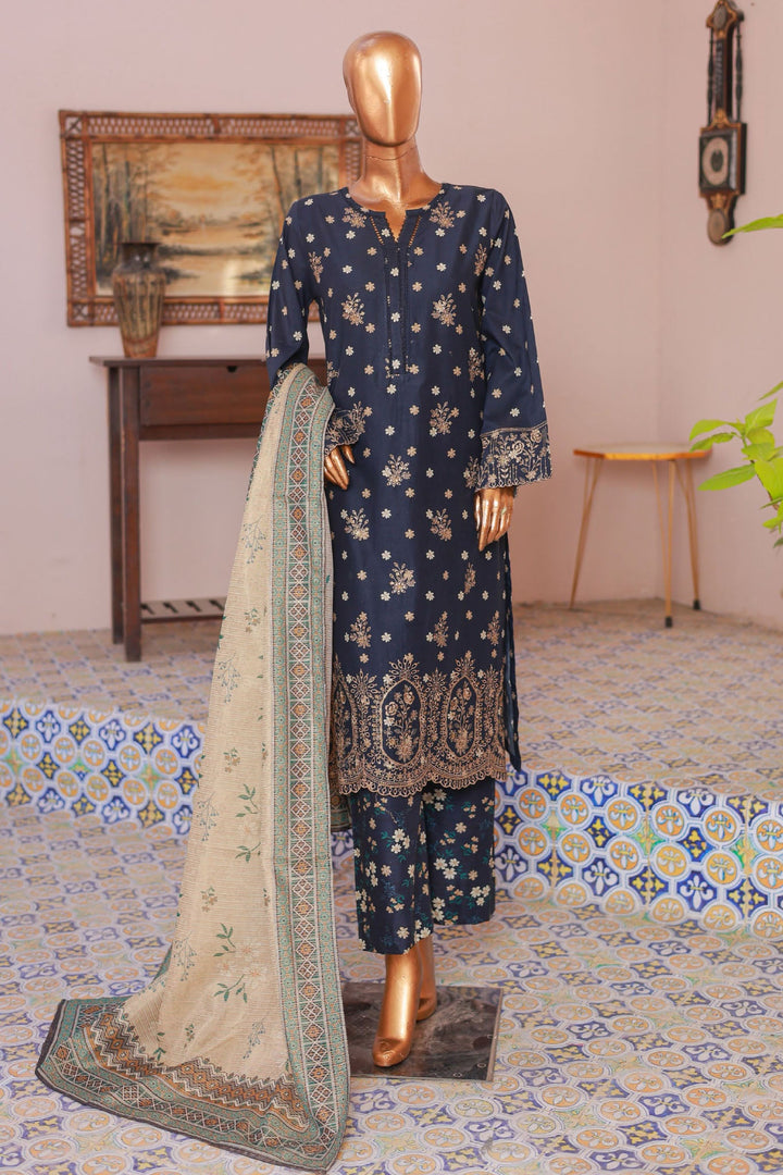 Bin Saeed Stitched 3 Piece Self Stripe Vol-02 Collection'2025-SM-2091-Navy Blue
