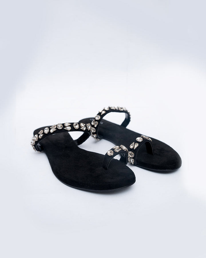 Details: Hand stitched stones on kohlapuris with suede padded base