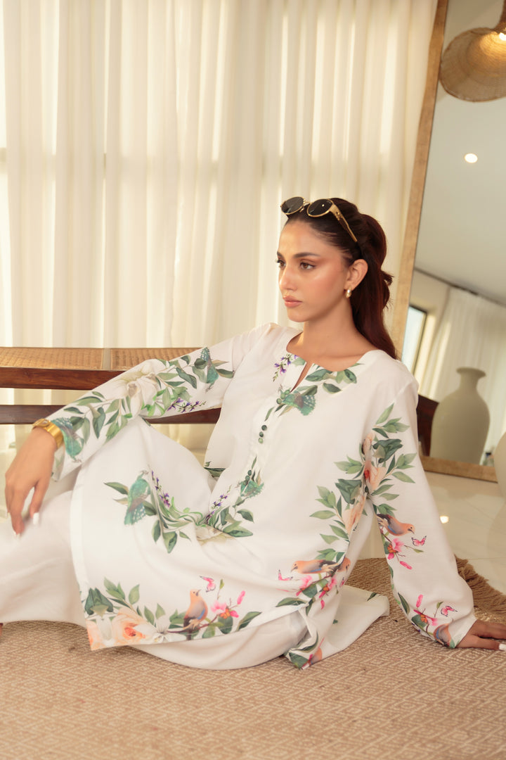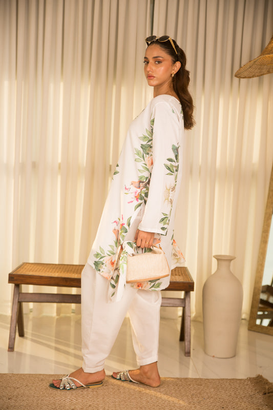 printed shirt with plain white shalwar