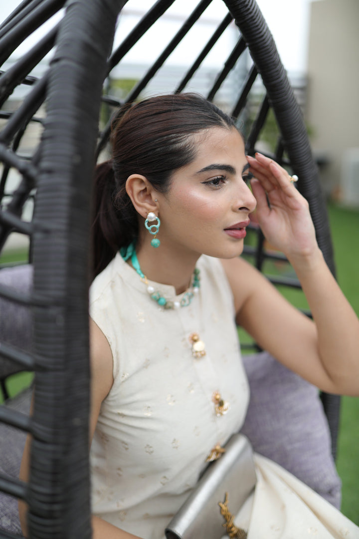 The blue and lime hues create a striking contrast, making these earrings a versatile accessory for both formal occasions and casual outings. The natural Variscite stones carefully chosen for their exquisite beauty and unique pattern are enhancing the allure of these earrings.