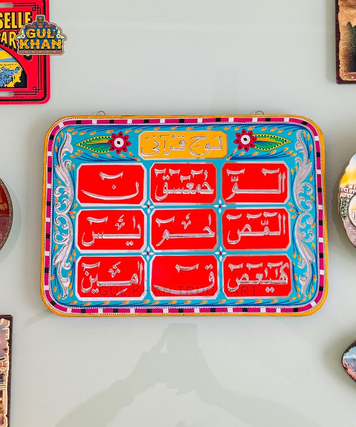 Description: Introducing our Truck Art Loh e Qurani, a beautiful blend of traditional Islamic scripture and vibrant truck art. This unique piece showcases the Loh e Qurani, adorned with colorful and intricate truck art designs. Perfect for adding a touch of spiritual and artistic charm to your space. Dimensions: Length: 10 Inches Height:  14 Inches Care Guide