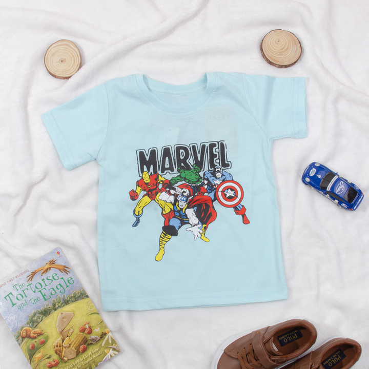 Boy Sky Blue Marvel Print T-Shirt