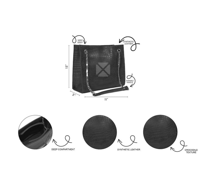 Thanks to its classic spacious size, this CROCODILE tote  with a  chain handle strap will be one you'll look forward to bringing everywhere. Plus, the top zipper and inside pockets promise ease of use.