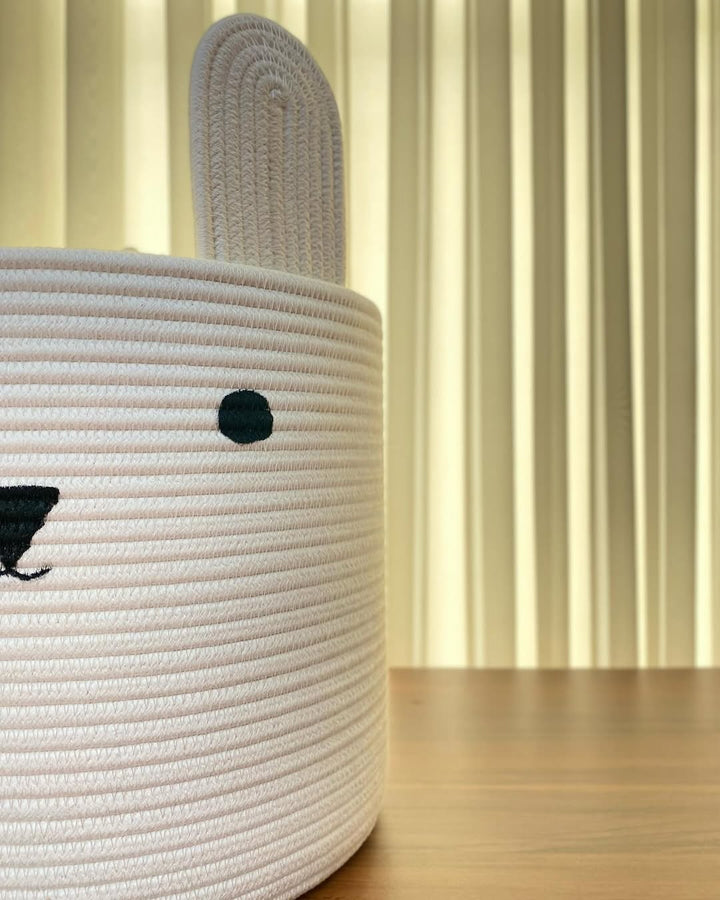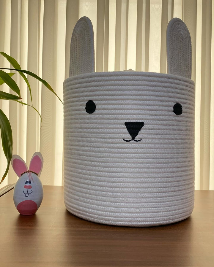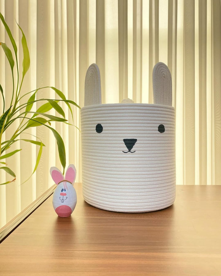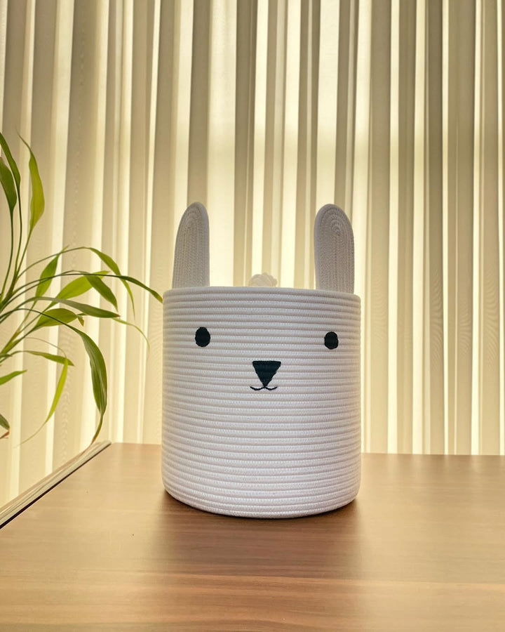 Bunny Toy Basket with Lid Cotton Rope Storage for Kids Room (Large)