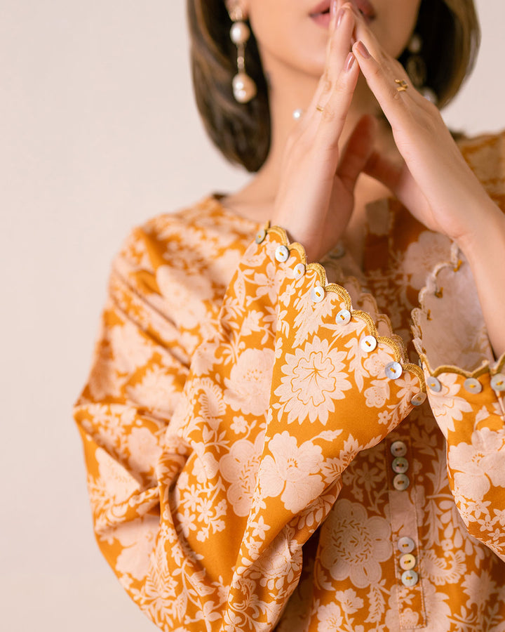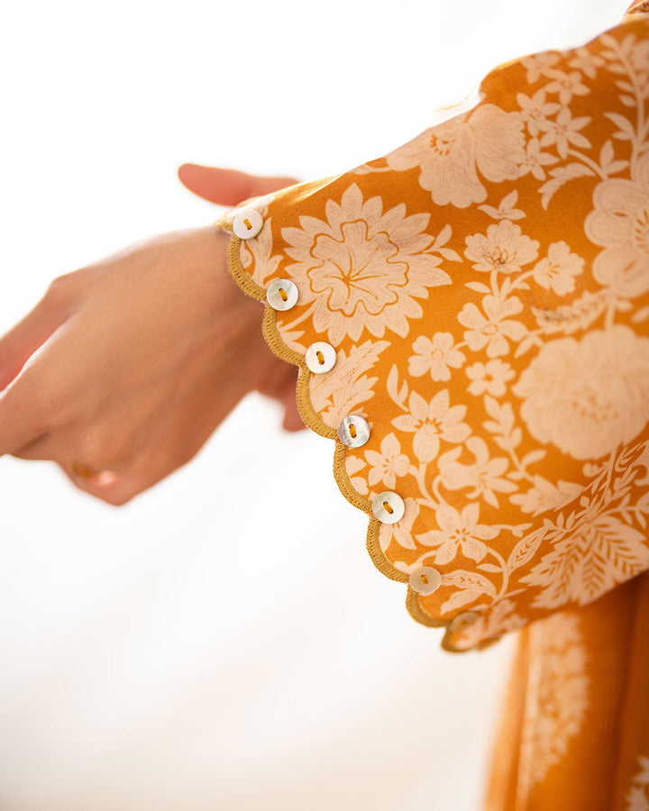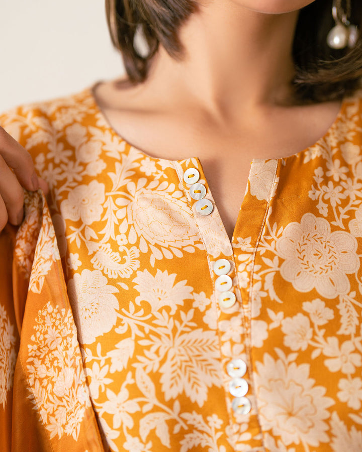 Brighten up your wardrobe with our kameez featuring a cheerful yellow and white floral print.