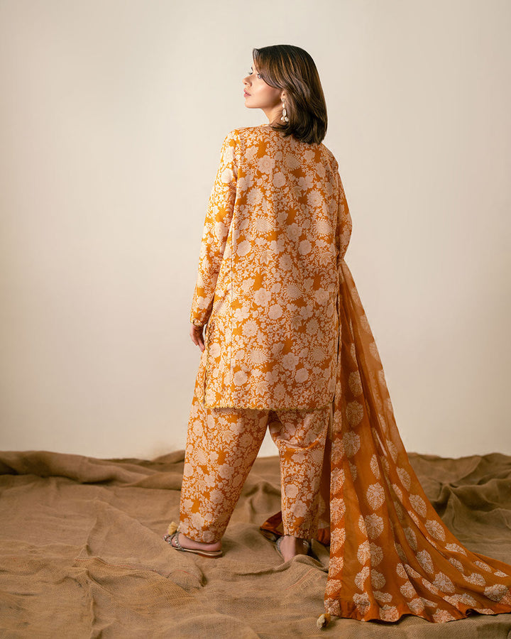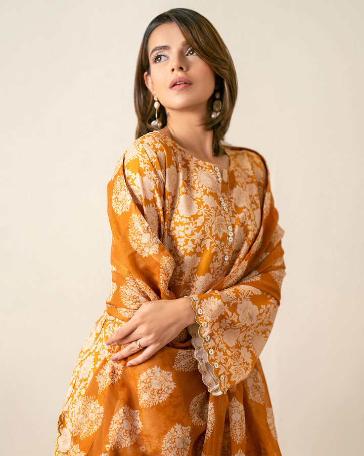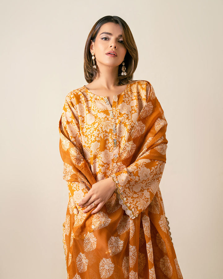 Ayla Studio Stitched PRINTED ESSENTIAL 2PC CO-ORD - Burnt Ocher