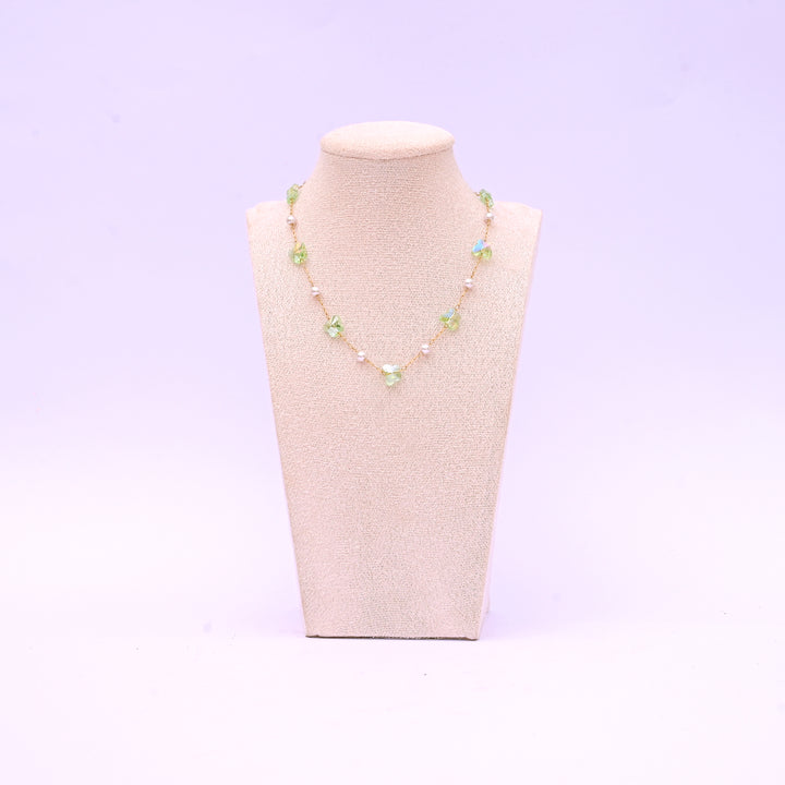 Crystal butterfly beads in an array of colors—blue, pink, purple, black, clear, and green—dangle from a beaded stainless steel chain. Light, magical, and utterly charming.