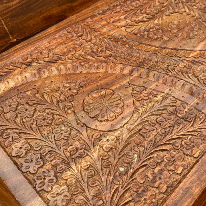 Carved Tea Wagon-Wooden Serving Tray