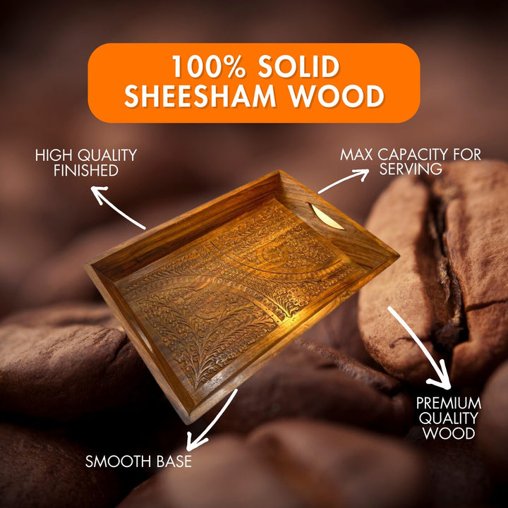 \nIntroducing our exquisite Solid Sheesham Wood Salad Tray adorned with intricate brass work, a masterpiece of craftsmanship that adds a touch of elegance and sophistication to your dining experience. Crafted from high-quality solid Sheesham wood, renowned for its durability and rich natural tones, this salad tray is not just a serving accessory but a statement piece that enhances the ambience of any dining setting.\nProduct Benefits & Features: