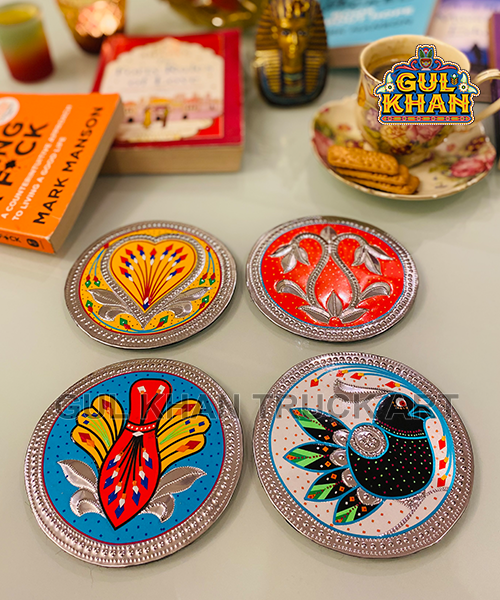 Set of 4 Chamakpatti Coasters (Bundle) Rs.1700 Material: Sticker Art (Chamakpatti)