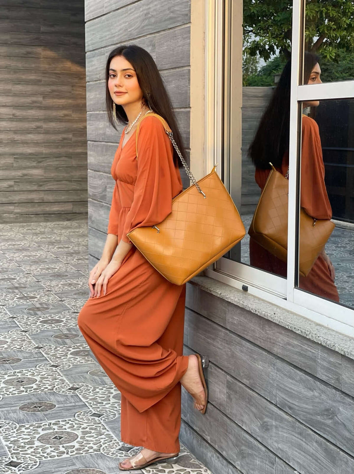 The VEGAS TOTE is an exquisite fashion tote handcrafted from luxurious leather featuring a beautiful cross stitch design and a dazzling shoulder chain. Its spacious compartment makes it an essential accessory for work, school, or travel.