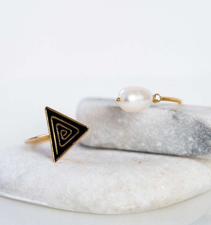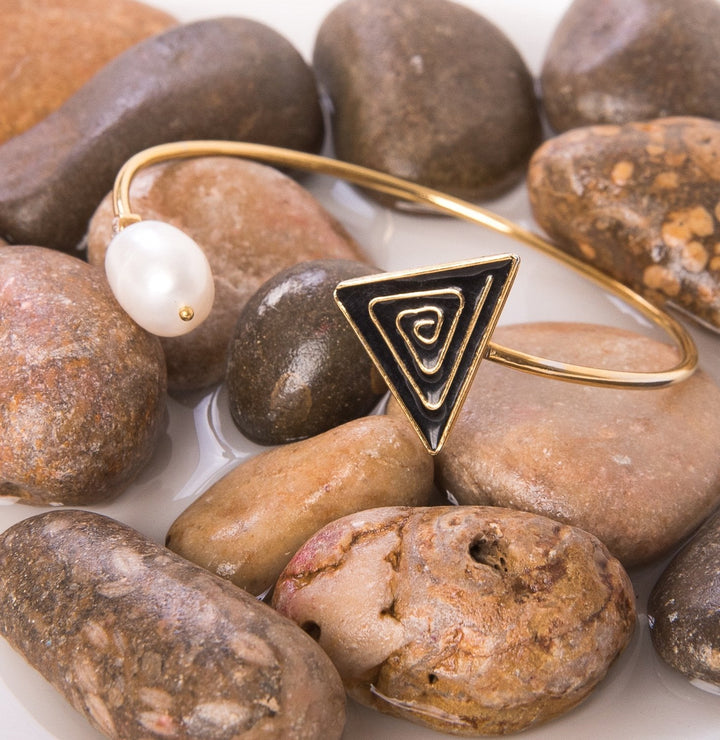 The lustrous sheen of black and gold chevron adds a classy touch to this bracelet. Wearable as a modern formal option, or as everyday cuff.